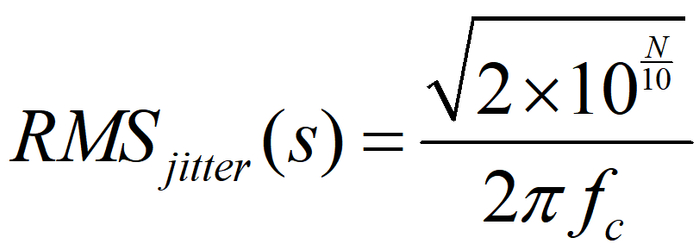 L(f)以功率谱密度函数的形式给出了边带噪声的分布,单位为dBc。单边带的总噪声功率N可以由L(f)函数在整个感兴趣频段内(通常选用的积分范围为12KHz到20MHz)积分得到。