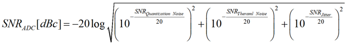 由量化噪声、热噪声和采样抖动三者一起决定ADC的SNR:
