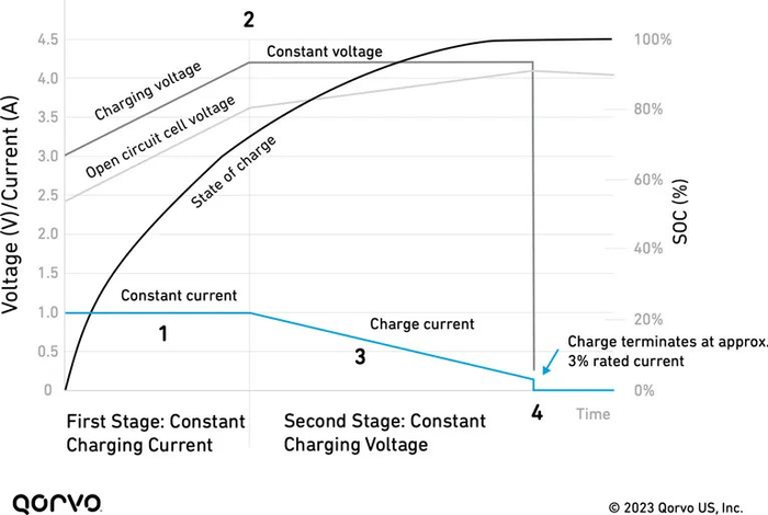 4. 对于传统含钴锂电池,当电流降至电池 Ah 额定值的 3%-5% 时,便表示锂离子电池已充满电。达到该阈值后,充电过程会终止,以避免电池发生性能退化。