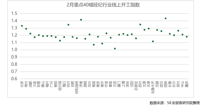 2月,随着节后复工复产,经纪行业作业热情迅速回升。因为行业流动性强,每年春节前后都是房产经纪行业的招聘旺季。叠加近期政策利好逐渐传导至市场,房地产市场成交和房屋价格都出现了积极的信号。并且,由于一二线城市较为强韧的基本面,房地产市场率先回暖,带动行业作业热情显著提升,也增强了经纪公司、门店经营者的从业信心。