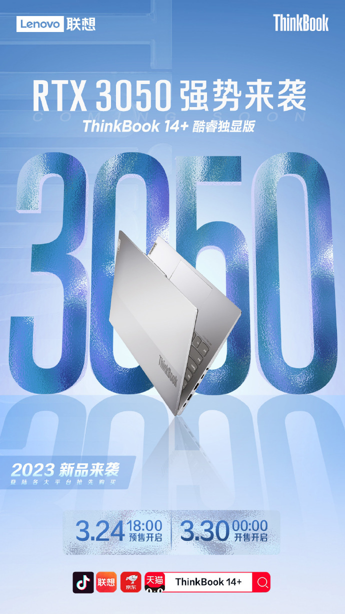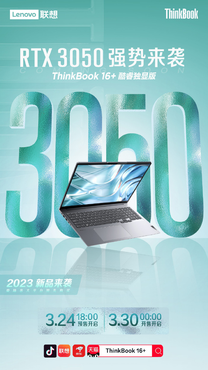 联想 ThinkBook 14+/16+ 笔记本电脑将于 3 月 24 日发售,搭载 RTX 3050 独显