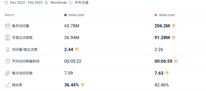 近三个月内,Temu 与 SHEIN 的流量对比 数据来源|similarweb