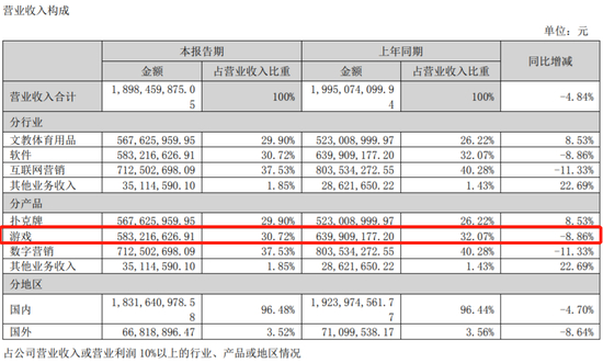 游戏业务也在营收与利润占比上均超过了50%,成为公司第一大业务。