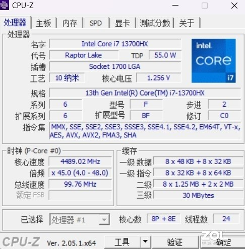 i7-13700HX处理器采用Intel 7制程工艺打造,异构混合架构设计使其核心规模达到了16核24线程。其中包含8个性能核与8个能效核,可处理更重负载任务,当CPU在后台处理任务时,用户还可以顺利进行游戏、流媒体和录音等操作。其性能核睿频可达5.0GHz,三级缓存30MB,基础TDP为55W。