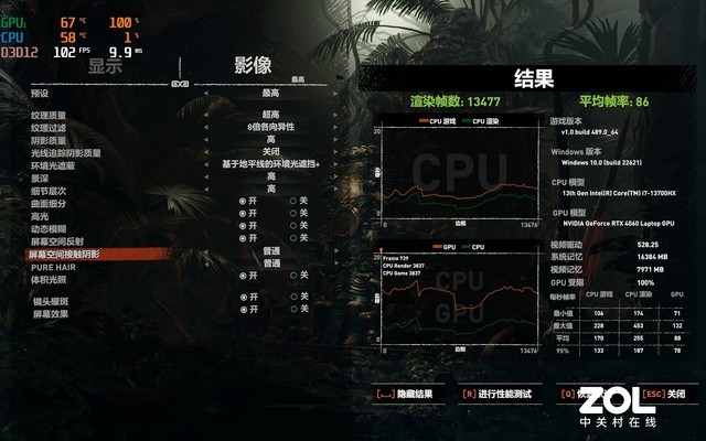 2560×1600分辨率+超级光追模式,DLSS自动的情况下,平均帧数可以达到44.41fps,可以看到这一代RTX 4060显卡能在2.5K分辨率下达到40fps以上流畅度了,这是一个不小的进步。