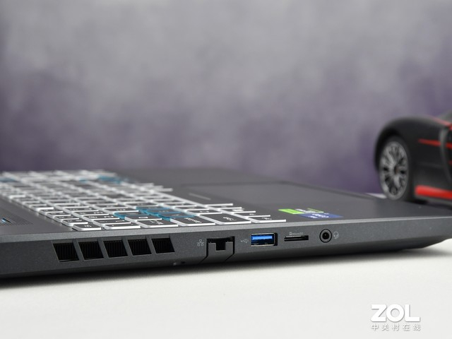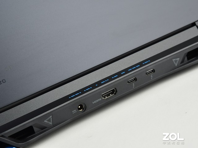此外,接口方面,在笔记本的左侧拥有RJ-45网线接口、USB 3.2 Gen 1、Micro SD读卡器、耳麦2in1接口,右侧则具备两个USB 3.2 Gen 2接口,其中一个支持为外接设备关机充电功能。在机身的背面,还具备了一个雷电4接口和一个HDMI 2.1接口,可以外接屏幕、外接显卡等扩展设备,无论是令游戏,还是娱乐都提升到新的高度。