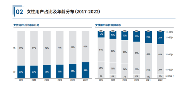 其次,女性用户比例不断增加。众所周知,如今女性群体的社会地位、话语权和对消费市场的影响力与日俱增,且女性拥有50-200万可投资产的比例从2017年的25.9%上升至2021年的33.4%。更独立、更有钱、更理智的中国女性用户,已经纷纷跳出“品牌溢价牢笼”,她们更愿意选择“一台我喜欢的中国车”,而不是“刻板印象里的外国好车”。