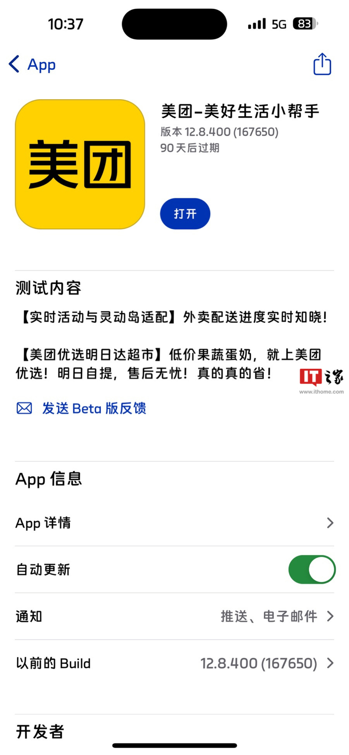 美团 iOS 版 12.8.400 测试版发布:适配实时活动与灵动岛,外卖配送进度实时知晓