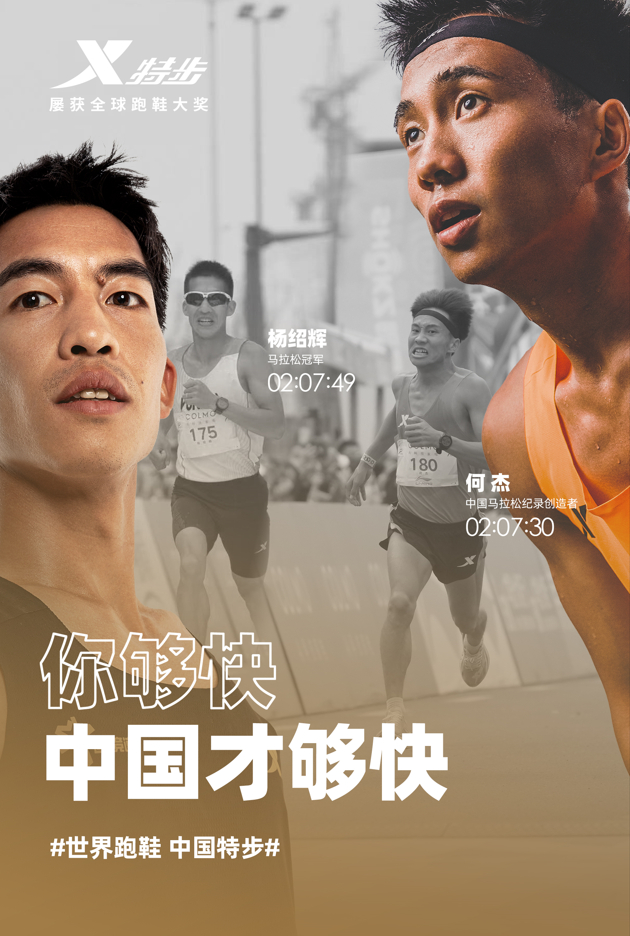 在2023年,何杰成了那个超越前辈董国建的马拉松明星,和他前辈一样,冲线的那一刻,他们穿着特步的160X系列跑鞋。