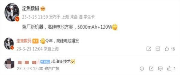 曝iQOO Neo8将配备高硅电池 网友整活:蓝海湖电池