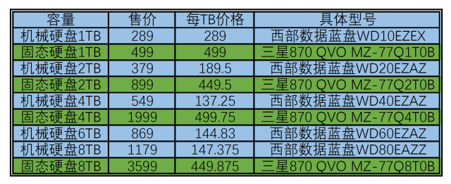 由于不同店铺、不同渠道(OEM / 零售版)、不同品相(全新 / 二手)的机械硬盘售价差异较大,因此以上价格信息全部搜集于“西部数据京东自营旗舰店”和“三星存储京东自营旗舰店”,仅作为价格方面的一个基准参考。