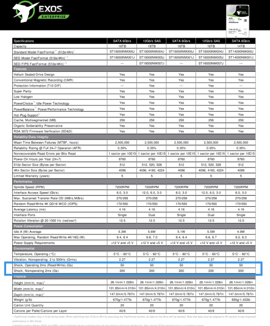 以希捷的这几款企业级机械硬盘为例,它们在工作状态(读 / 写)下,抗冲击强度仅为 50Gs。而在非工作状态下,抗冲击强度为 200Gs。这些数据也可以从侧面看出机械硬盘的读写状态下应对撞击是十分脆弱的。