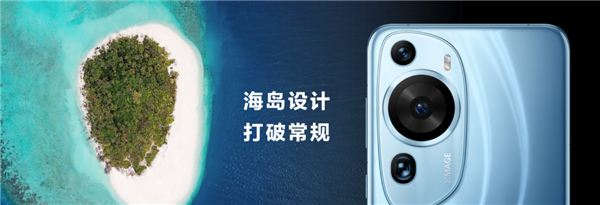 华为P60 Art将蔚蓝大海之中海岛意向,通过有机形态的镜头模组呈现,打破常规的设计语言。