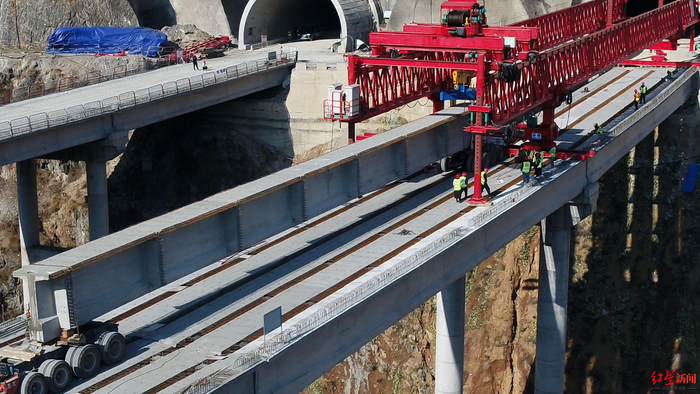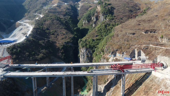 3月23日,红星新闻记者从蜀道集团获悉,今日上午,随着沿江高速宜金段控制性工程吾多拉达大桥最后一片长40米、重117吨的T梁顺利架设完成,沿江高速宜金段主线首座桥梁全幅贯通。