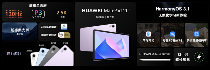 华为MatePad 11英寸 2023款平板首发 纸感柔光屏助推无纸化学习工具加速转变