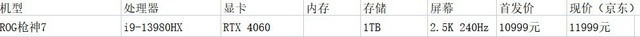 这款ROG枪神7配置还是很给力的了,首先搭载了i9-13980HX,这颗处理器的性能非常多认可,算是13代酷睿处理器位数不多的。还搭载了140W满功耗RTX4060独立显卡,以及1TB固态硬盘,内存硬盘都可以扩展。