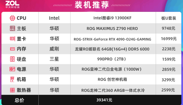 整套配置的总价为39341元,不到4万元就能组建一套顶级的ROG游戏主机,还是挺让小编感觉到意外的。不知道这样的配置和价格,符不符合大家的心理预期呢?