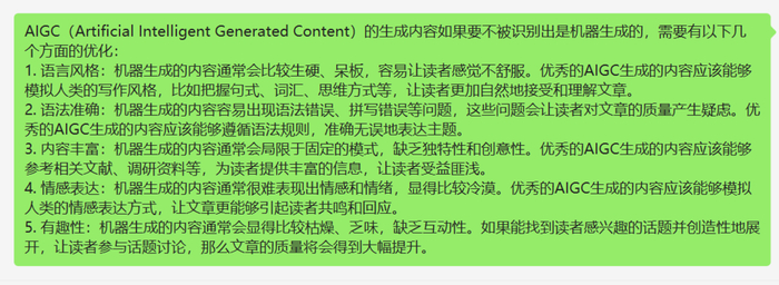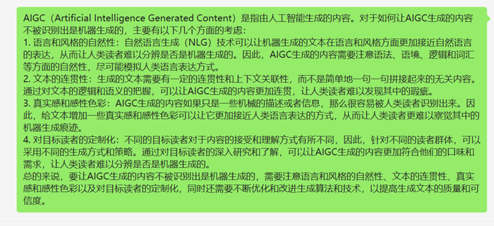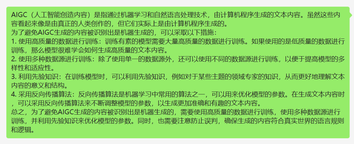 问题一:请你论述一下AIGC生成的内容如何能不被识别出是机器生成的?