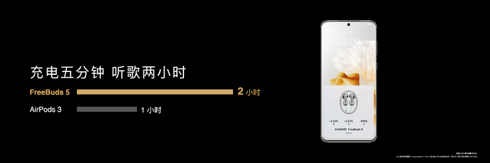 在HarmonyOS 3的加持下,配合华为智慧生活App,用户可解锁个性化的耳机弹窗、音频服务卡片、音频连接中心等更多连接操作,革新以耳机为中心的连接新体验。此外,HUAWEI FreeBuds5配合耳机盒的总聆听时长达到30小时11,至臻版还支持超级快充,根据华为实验室测试,耳机放进盒子里充电5分钟,就能享受长达2小时的音乐聆听,较上一代充电速率提升200%12。