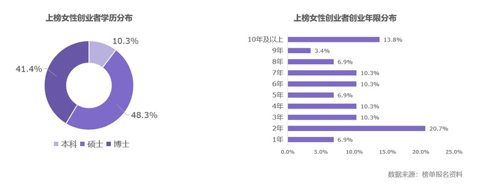 v 超四成女创上榜者是博士学位,上榜者平均创业年限为5.3年