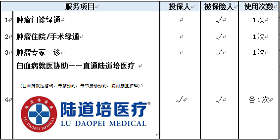 “君龙孝心保”搭配四项健康管理增值服务,分别是肿瘤门诊绿通、肿瘤住院或手术绿通、肿瘤专家二诊以及白血病直通陆道培医疗服务。医疗服务可覆盖全国280个城市的1800多家就医绿通医院及1500多家三甲医院。