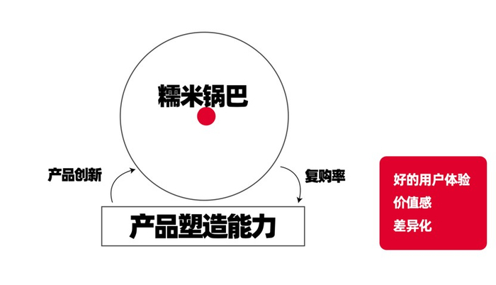 用混沌的“一”思维来看,大吃兄的“一”是产品的塑造能力,而且塑造能力一定要体现出差异化、价值感,还有好的用户体验。击穿的单点选择了糯米锅巴,持续创新是迭代,反馈是消费者的复购率。