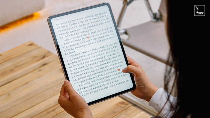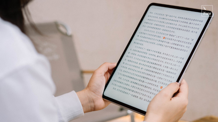 屏幕比前代大了,但在重量上并无明显变化,552 克的整机重量,配合着 7:5 的屏幕比例,单手捧着时,重心集中于掌心位置,进一步减轻握持压力,方便我们带着它到处走,随时进入高效工作的状态。