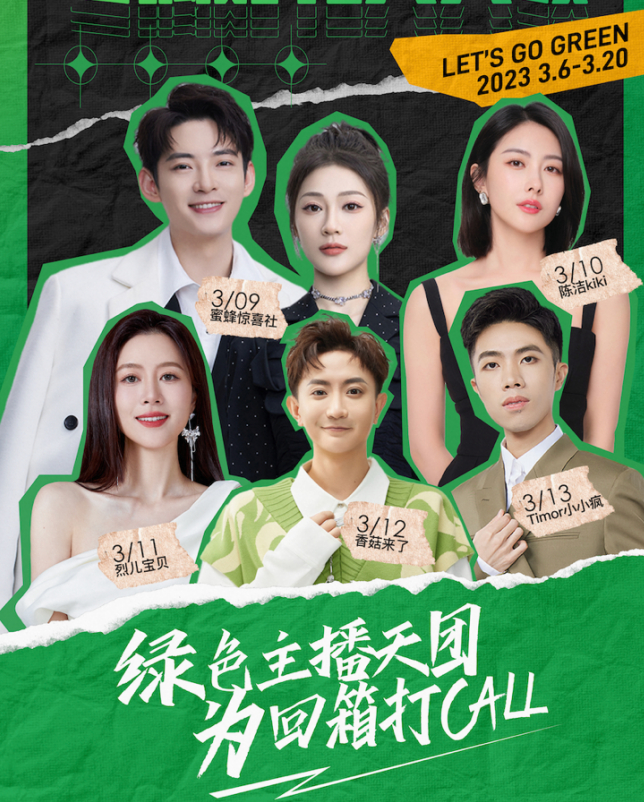 本次绿色直播活动还有蜜蜂惊喜社 、陈洁kiki 、香菇来了 、Timor小小疯等多位主播参与。
