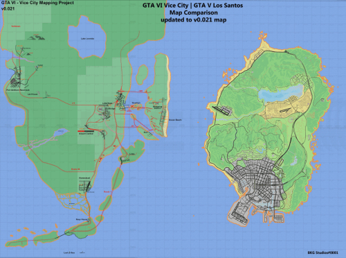 据gamerant消息,Reddit用户tusstaster在论坛发布了《GTA6》拼凑地图与前作的对比,该玩家表示此图基于坐标、录像等细节拼凑而成,大小是洛圣都的三倍。观察显示《GTA6》地图包含洛克里奇和霍姆斯特德等地区以及数个小岛,一些主要公路如I-197和I-77也包含其中。