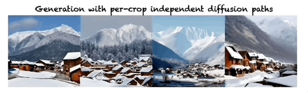 即便有时候每个步骤都可能会将图像拉向不同的方向,但最终融合到一个全局去噪步骤当中,得到一个无缝图像。