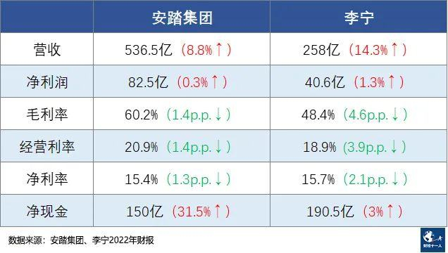 2022年李宁全年的净利润为40.6亿元人民币,低于国信证券和浦银国际预期的41.38亿元和41.9亿元。招银国际也在报告中提到,李宁的净利润比彭博的预期降低9%。