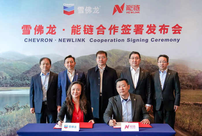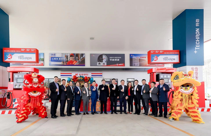 中国山东,2023年3月25日,全球领先的综合性能源公司雪佛龙,通过其子公司雪佛龙品牌国际有限责任公司,与中国领先的能源数字化企业能链签署商标许可协议,推进加德士中能链加油站在中国大陆地区(广东、天津除外)的发展。签约当天,双方共同打造的全国首家“加德士中能链”品牌加油站——加德士中能链悦驰石化加油站在山东烟台盛大开幕。雪佛龙国际油品业务大中华区总裁宋承伟,能链创始人、CEO戴震等双方高层出席开业仪式,并为加油站剪彩。