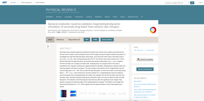 虽然目前除了引力波外还没有直接观测到过黑洞吞并中子星的过程,但在 2022 年 7 月,一篇发表在《物理学评论 D》上的文章中,研究人员通过计算机集群模拟了黑洞与中子星的合并过程。