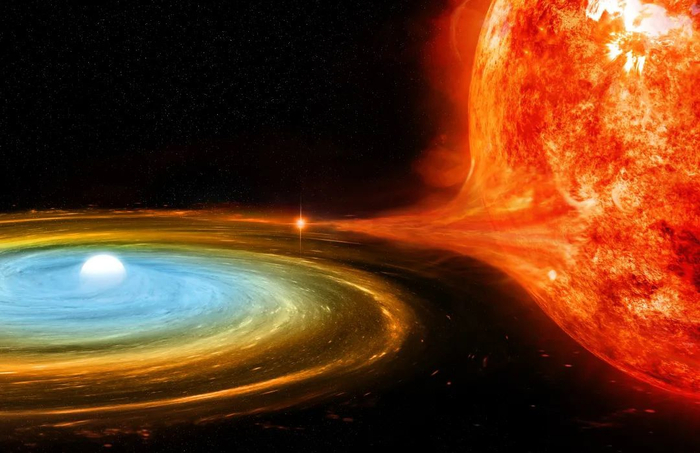可见在太阳系这样的行星系统中,白矮星几乎就是天体食物链的顶层。就算位于的是一个双星系统,只要旁边的伴星还停留在巨星阶段,白矮星就可以放肆地对其进行蚕食。