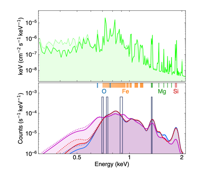 研究人员推测,一些行星可能在白矮星的潮汐力作用下被撕碎,最终落入了白矮星的吸积范围,在周围形成了一个碎片盘。而这颗白矮星的表面温度异常的高,接近 10 万度,是一般白矮星的 10 倍。那些落入白矮星的碎片,随着高温的大气层激发出强烈的 X 射线,最终被我们捕捉到。