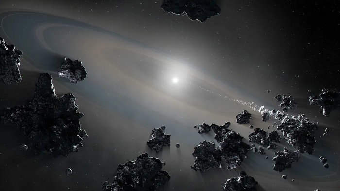 我们知道,白矮星作为小质量恒星的残骸主要由碳、氧构成,而其大气层更是由薄薄的氢或氦组成。但是在本该由轻元素构成的大气层中,研究人员却探测到了氧、镁、硅、铁等重元素,这意味着很可能有岩质天体葬身于此。
