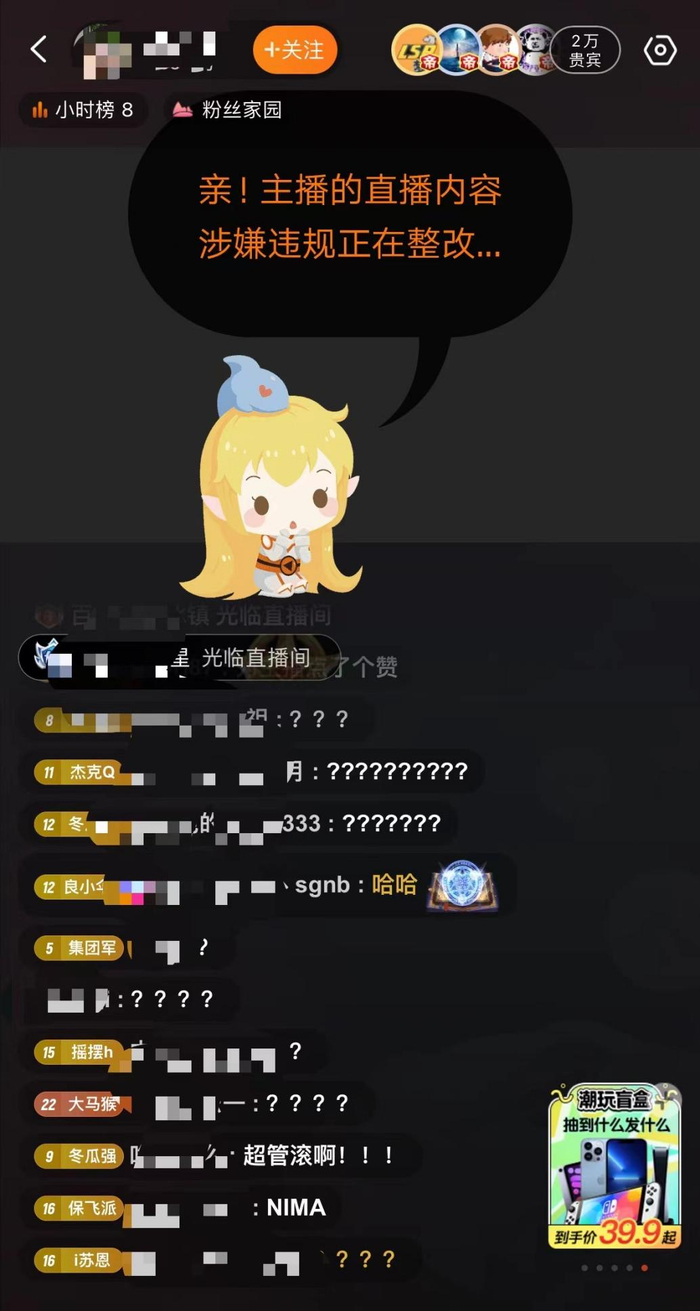 在四分钟后,当直播间人数突破两万时,主播也因舞蹈尺度太大被超管封禁。很多观众在弹幕区发来问号,也有观众让超管放人。但随后过了不久,该主播的直播间重新开放,主播继续直播。