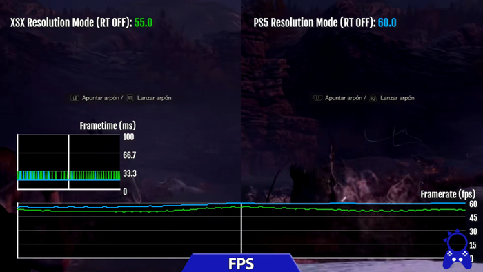 正因为刀具的判定变得关键,为了获得更加优秀的战斗体验,帧数显得尤为关键。当然对于PS5平台来说,这早已不再值得顾虑,在 “帧数模式”和“画质模式”已是业界标配的现在,主机玩家往往不需要操心优化问题,也不用为了帧数费心调整各种特效,画面与帧率的取舍只需一键切换。根据著名油管知名对比博主ElAnalistaDeBits放出的视频,如果不开启光线追踪,PS5在两种模式下的帧数波动都较为稳定,基本可以保持在60帧。