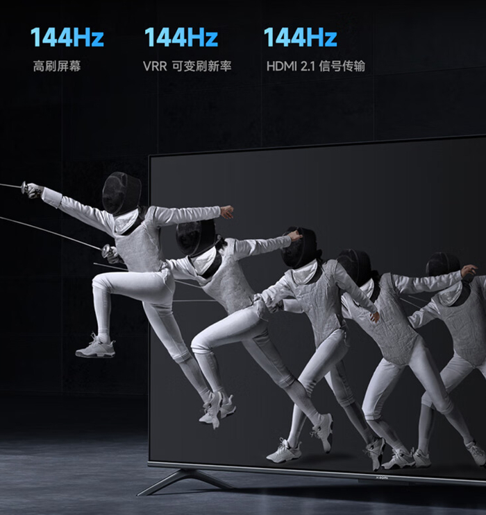 据IT之家了解,新款电视搭载原生 4K 144Hz 高刷屏,配有 HDMI 2.1 接口,支持 MEMC 运动补偿、10.7 亿色、94% DCI-P3 色域、HDR。