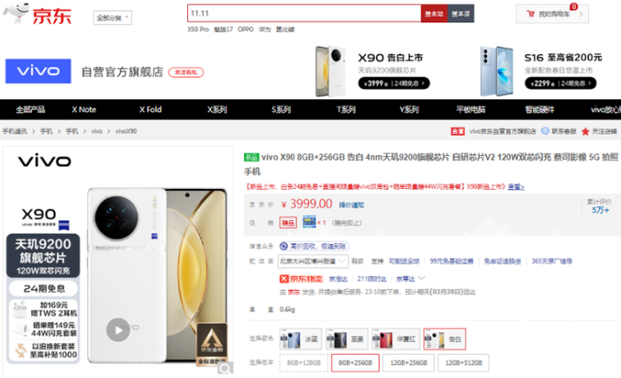 vivo X90搭载天玑9200和自研芯片V2,不仅性能强劲,还带来内存单元、AI计算单元和图像处理单元的提升,内置等效4810mAh电池,支持120W双芯闪充,续航无忧。vivo X90还搭载超视网膜护眼屏,画面清晰细腻,还通过芯片、硬件和软件实现三重护眼,消费者观看屏幕更舒适。vivo X90还带来蔡司T*光学镜头,使用VCS仿生光谱技术,支持蔡司耀斑人像、蔡司微缩虚化,随手拍到满意大片。vivo X90 8GB+256GB京东手机焕新季期间到手价3999元,可享24期免息、以旧换新套装至高补贴1000元。