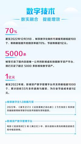 2022年,党的二十大报告提出“加快发展数字经济,促进数字经济和实体经济深度融合”。过去一年,优酷推动数字技术在影视行业的应用,通过帧享数字化制作、影视资产数字管理平台、云尚制片等行业解决方案,加速行业数实融合。