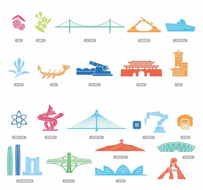 虎门大桥、莞香花、西城楼、可园、龙舟、东莞制造、篮球中心、滨海湾大桥……在配套发布的新版《东莞城市品牌视觉识别系统管理手册》中,20种能够代表东莞的辅助图形呈现城市的底蕴和精彩,助力传播更多维、立体的城市形象。