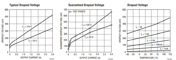 即输入与输出之间能够维持正常工作的最小压差。VIN=VOUT+Vdropout。芯片的的设计工艺和结构不同,压差不同;电流增加温度升高压降也会增大。
