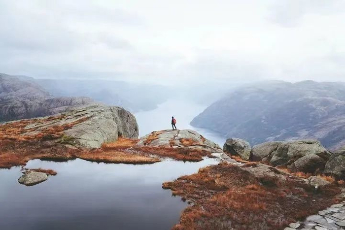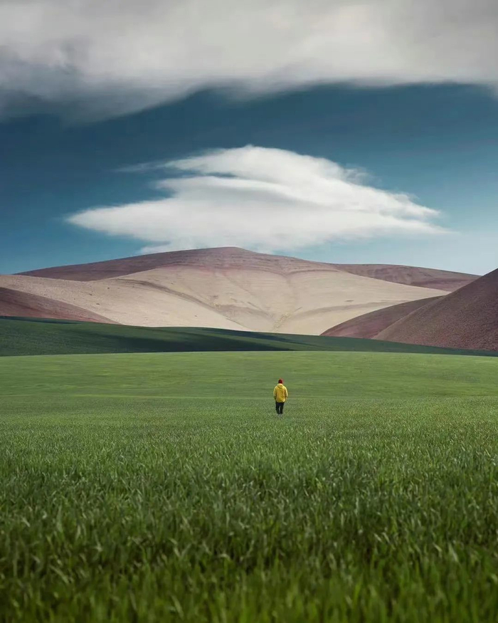 偏简洁风格的照片更适合这种主题,一方面不会完全掩盖住人物的存在,另一方面也更能表现出壮阔的感觉,强化人物与环境关系。