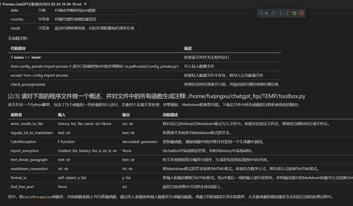 例如,作者尝试让 chatgpt_academic 读懂并剖析该项目自身: