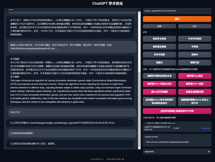 总体来说,chatgpt_academic 能够为学术研究大幅提高办公效率,感兴趣的读者快去试试吧。
