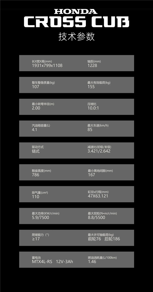 3月30日,本田摩托官方宣布Honda Cross Cub 110在中国上市,指导售价1.3万元。