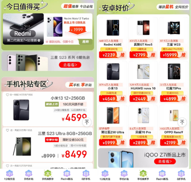 最近手机圈新机看点十足,前有华为P60系列、OPPO Find X6系列接连登场,后有Redmi带来哈利·波特联名款Note 12 Turbo,众多产品创新也再次激发消费者的换机需求。近日,也有媒体报道指出,7成女性用户认为线上买手机更便宜,在微博引发网友热议,以更低的价格、更可靠的服务入手新机,开始成为消费者的购机新趋势。