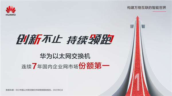 报告显示:华为以太网交换机以36.6%的市场占比,再次夺得2022年国内企业网市场份额第一的宝座,连续7年卫冕。