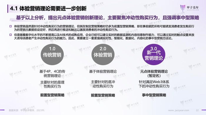全球互联网技术的发展进入到向Web3.0时代过渡的特殊时期。数字化水平在持续提高,新消费群体也在不断涌现,导致现在消费者的消费行为在不断演化。 过去那种基于单一消费者购买行为路径的营销模型已经过时了,我们需要建立一套具有多元路径的消费者购买行为模型,并形成新的营销方法论。 为了解决这个问题,为了给行业探索并提出一些新的符合当下Web3.0体系下市场规律的营销方法论。甲子光年智库开展了本次专项研究,并尝试推出这份白皮书。 我们希望能为行业发展抛砖引玉,为探索新时代的数字营销方法论贡献一点力量。